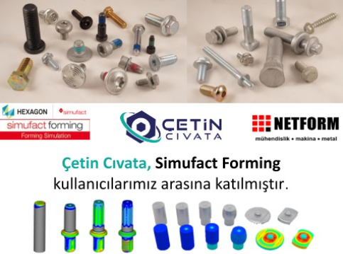 Çetin Cıvata Simufact Forming'i seçti. 11 Ekim 2022 Çetin Cıvata soğuk dövme bağlantı elemanları üretiminde, analiz ve Ar-Ge çalışmalarında kullanmak üzere Simufact Forming yazılımını tercih etti.