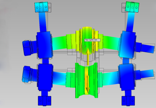 Daha önce tahriksiz makaralarla yapılan simülasyonlarda hesaba katılan mil deformasyonları, artık tahrikli makaralarla yapılan simülasyonlarda da dikkate alınabilir.