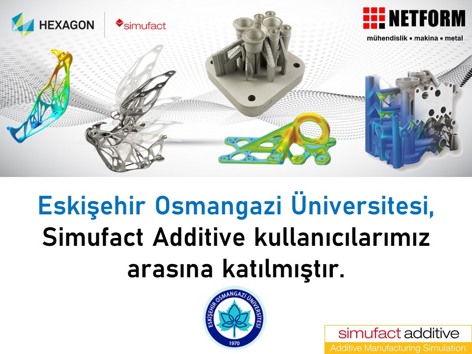 Eskişehir Osmangazi Üniversitesi, Simufact Additive'i seçti. 24 Şubat 2021 Eskişehir Osmangazi Üniversitesi, lisans ve lisansüstü dersleri ve araştırma projelerinde kullanmak için Simufact Additive programını tercih etti.