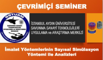 NETFORM Mühendislik olarak, üniversite-sanayi işbirliği kapsamında akademik çalışmaları desteklemek amacıyla seminerler düzenlemeye devam ediyoruz. 23-24 Şubat tarihinde İstanbul Aydın Üniversitesi - Savunma Sanayi Teknolojileri Uygulama ve Araştırma Merkezi (SSTUAM) ile "İmalat Yöntemlerinin Sayısal Simülasyon Yöntemi ile Analizleri" konusunda çevrimiçi bir seminer gerçekleştireceğiz.