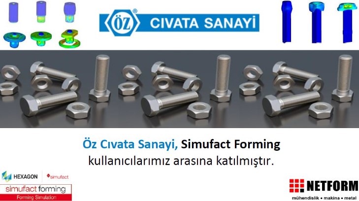 Öz Cıvata Simufact Forming'i tercih etti. 20 Ocak 2023 Öz Cıvata Sanayi soğuk dövme bağlantı elemanları üretiminde, analiz ve Ar-Ge çalışmalarında kullanmak üzere Simufact Forming yazılımını tercih etti.