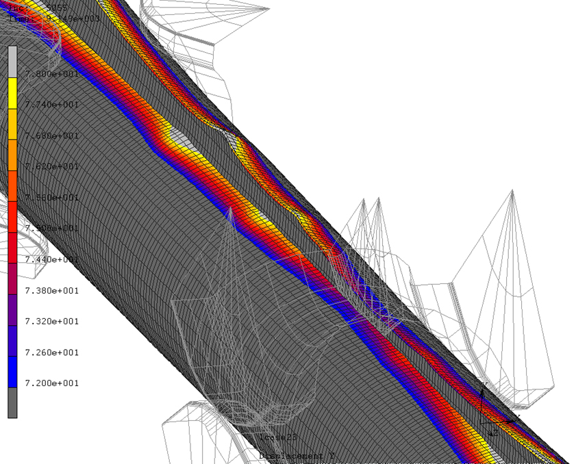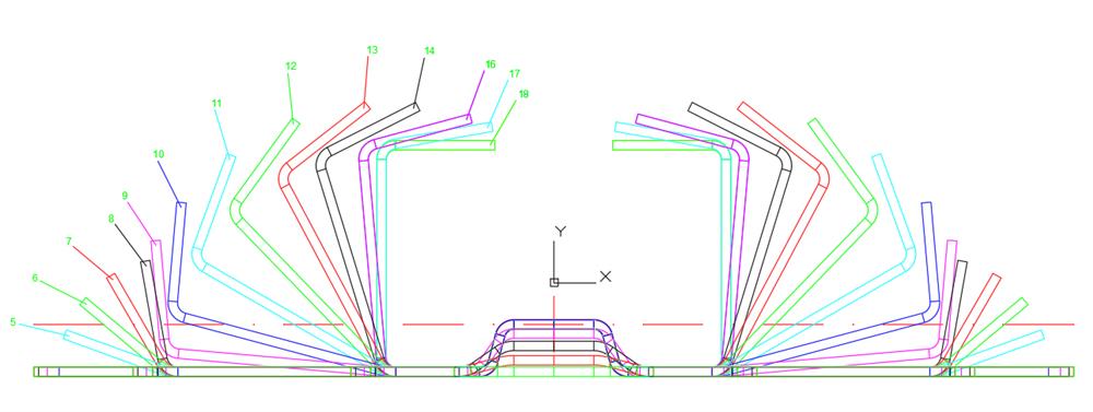 Roll form işleminin sonlu eleman simülasyonunu gerçekleştirir. İmalatta karşılaşılabilecek geri yaylanma, incelme, uzama, sehim ve form bozuklukları başta olmak üzere tüm sorunlar üretim öncesinde tespit edilip gerekli tasarım değişiklikleri makara imalatı öncesinde gerçekleştirilir.