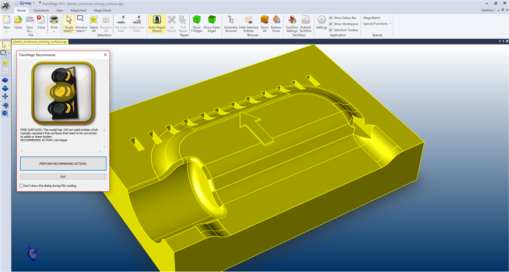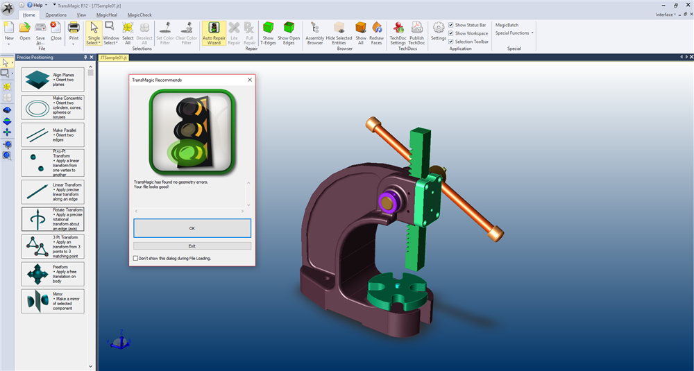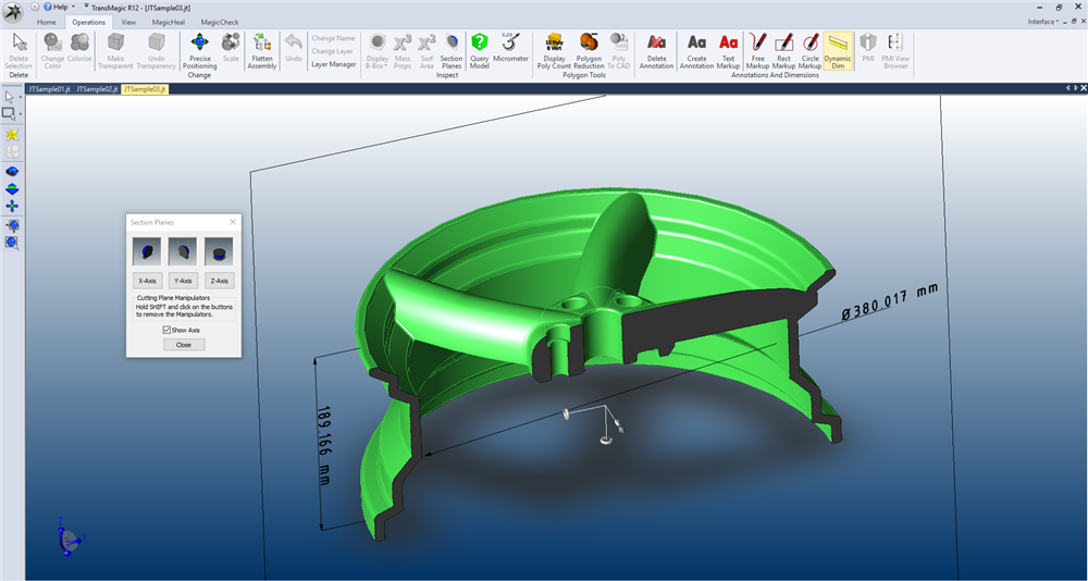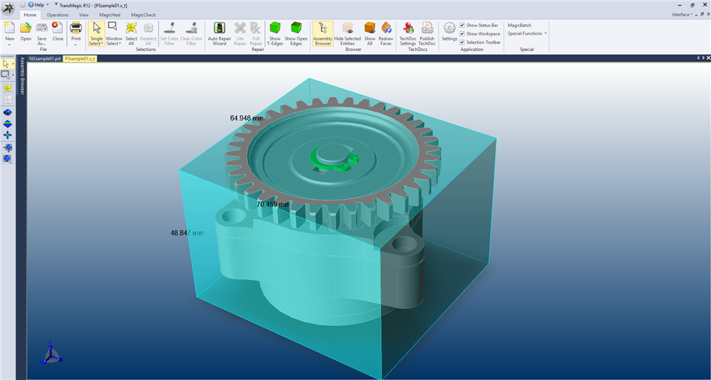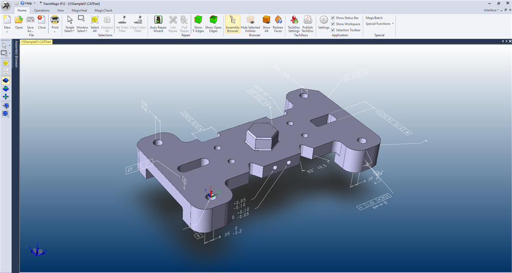 TransMagic 3-boyutlu CAD modellerinin ön izlemesi, tamiri, karşılaştırılması ve format dönüşümleri için geliştirilmiş bir yazılımdır. Kullanıcı dostu arayüzü ile karmaşık CAD modelleri üzerinde hızlı ve kolay işlem yapılabilir. Gelişmiş araçları ile hassas şekilde analiz, tamir ve format dönüşümleri gerçekleştirilebilir.
